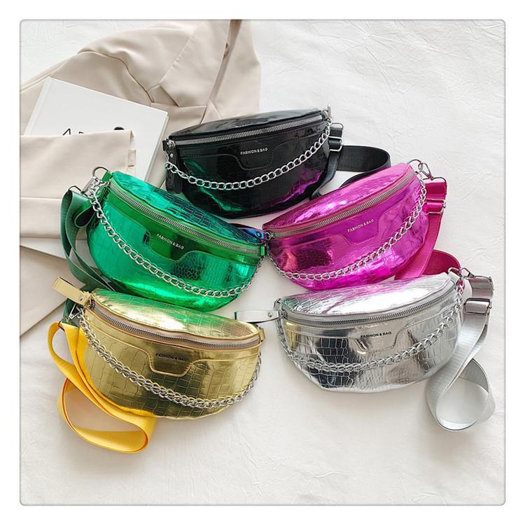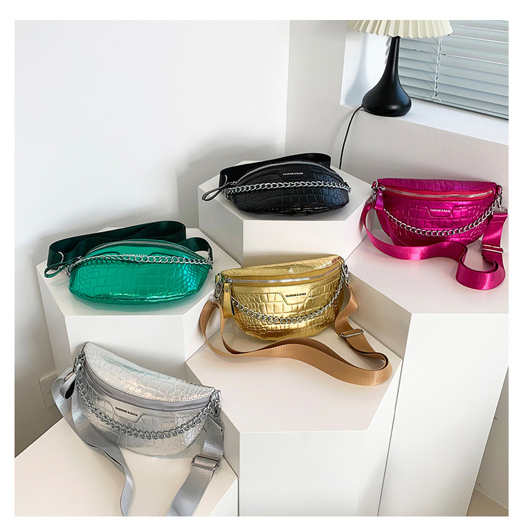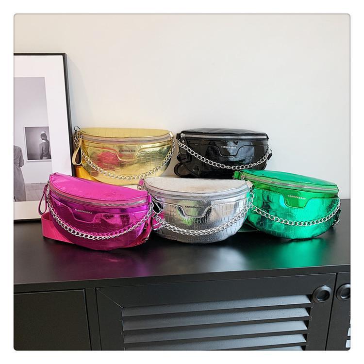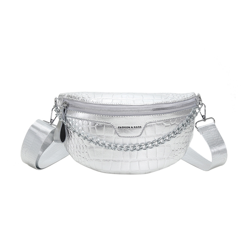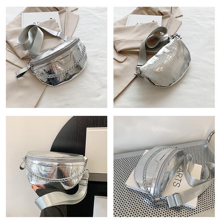 Fashion Silver Leather Daily Fanny Pack Size: L26XW7XH15CM Material: PU Leather