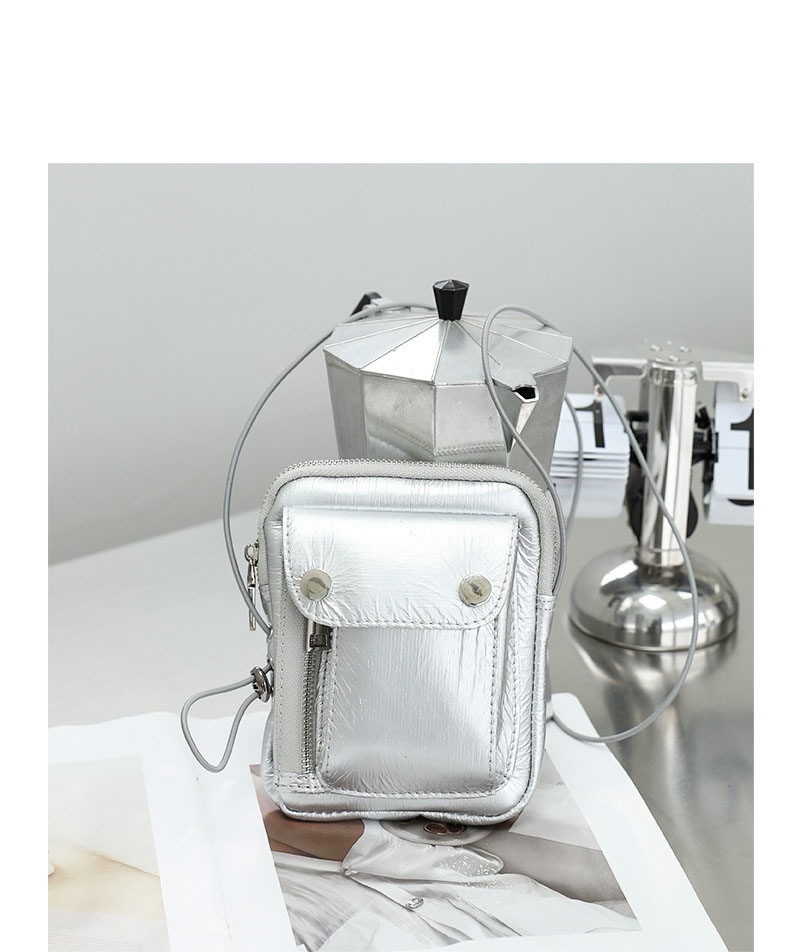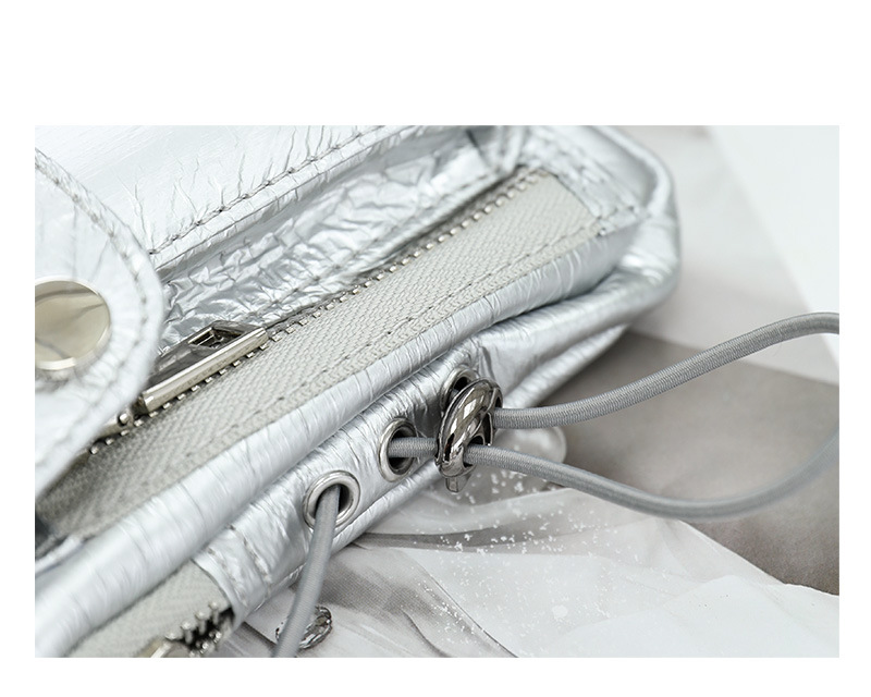 Fashion Silver Leather Daily Shoulder Bag Size: L11.5XW2XH15CM Material: Leather